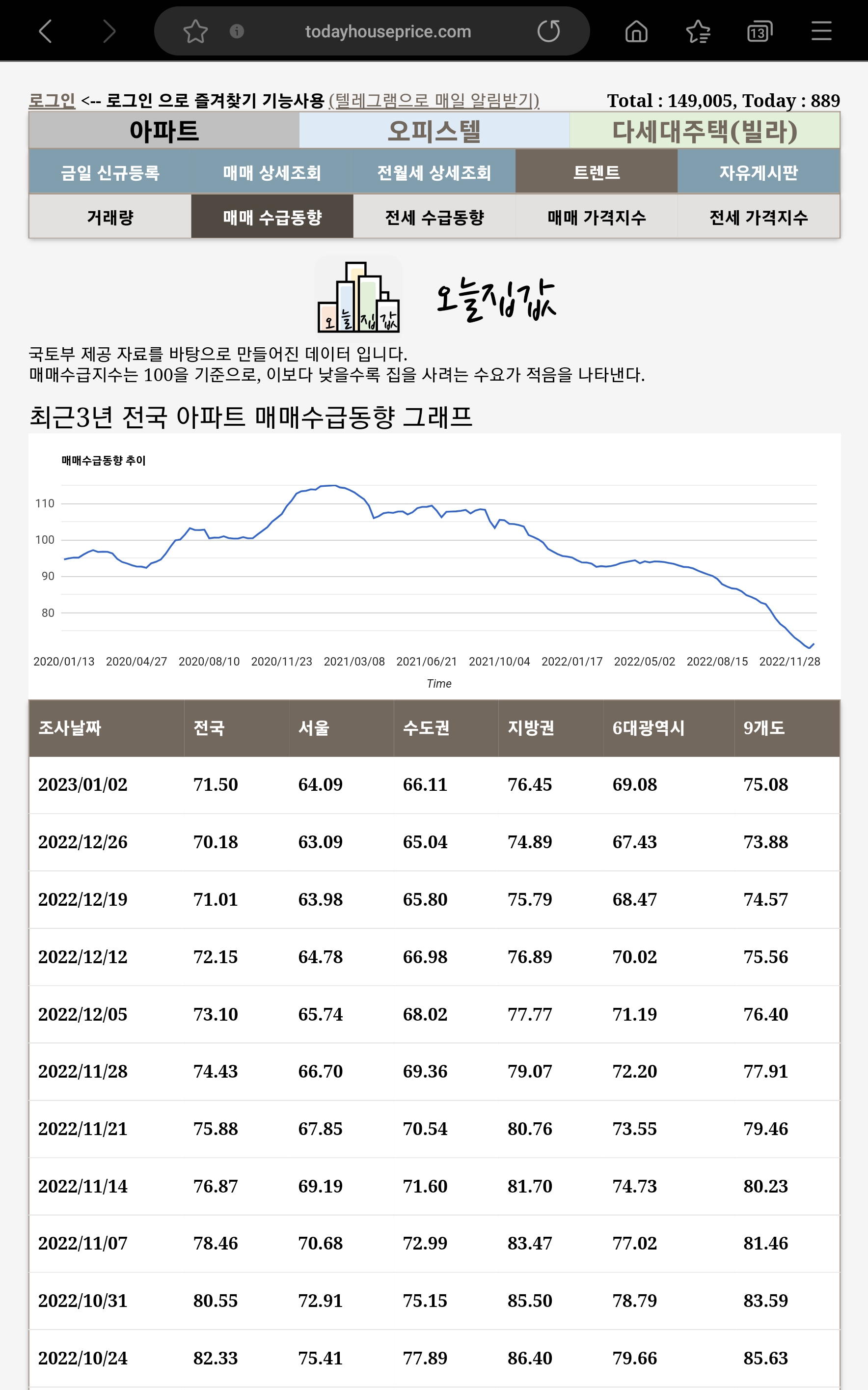 | [2023/1/2]아파트 매매 가격지수 (오늘집값) (0) | 2023.01.10 |