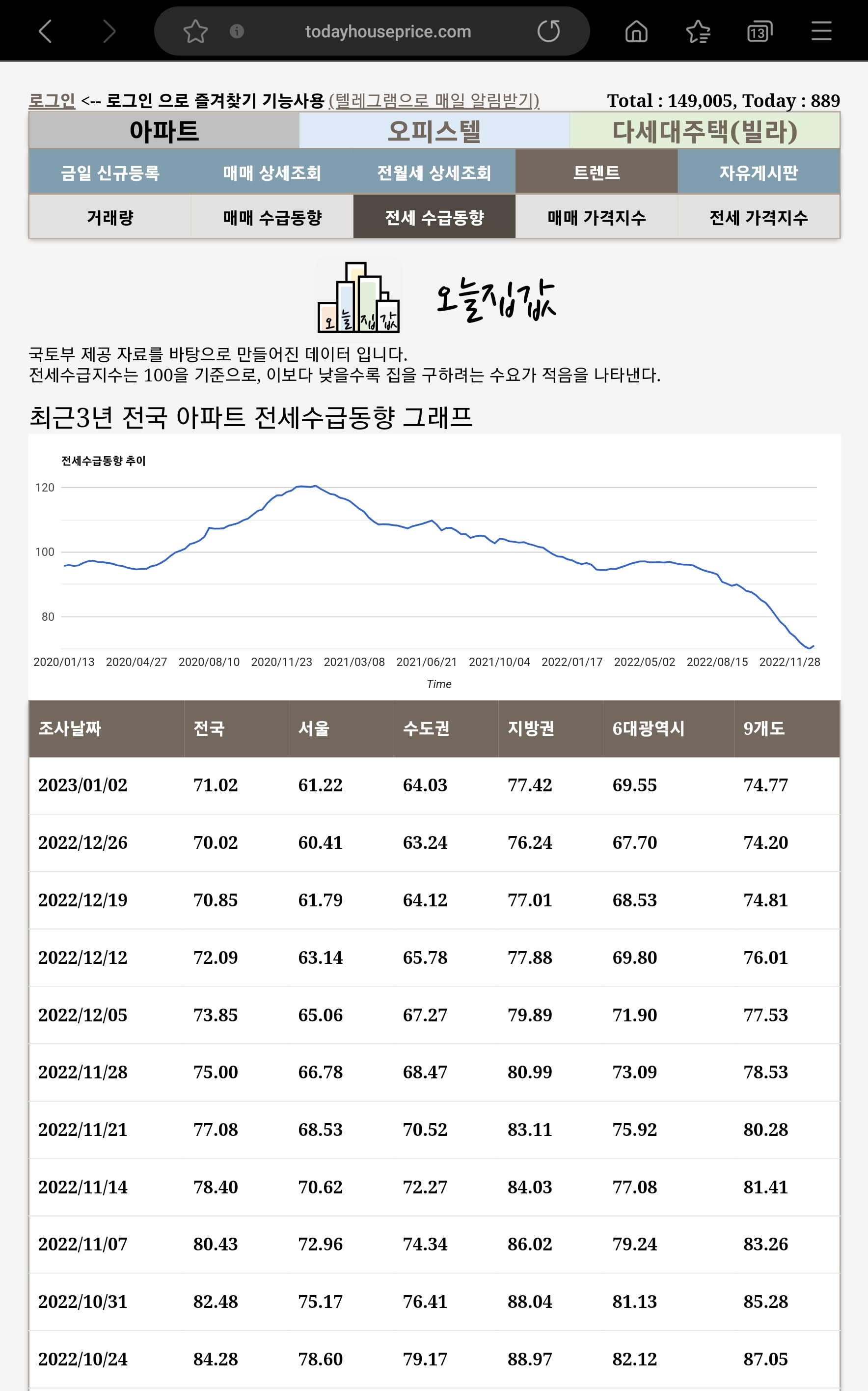 [2023/1/2]아파트 전세 수급동향 (오늘집값)